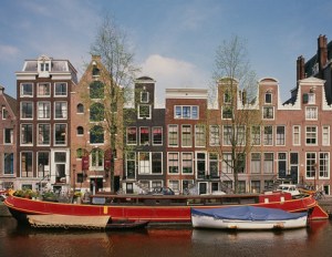This is what Amsterdam looked like. Canals with narrow streets on either side and big old buildings that were tall with big windows and a gable in the top.