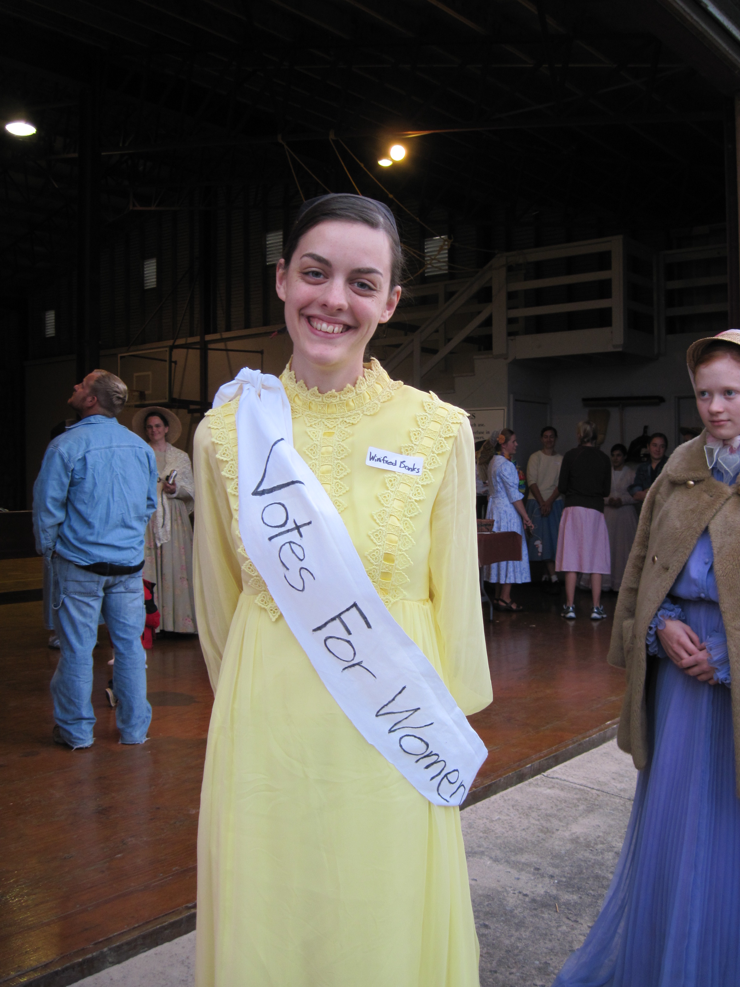 Most of my costumes are in Oregon but I do have one out here. It is a yellow high-necked dress that I got at Gift and Thrift for $3 last spring. So I wore that, but I wished so bad I could think of a way to add some umpf.