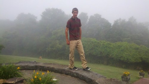 10. The morning of my birthday was foggy. Chris decided to walk around the pond. I took a picture of it.