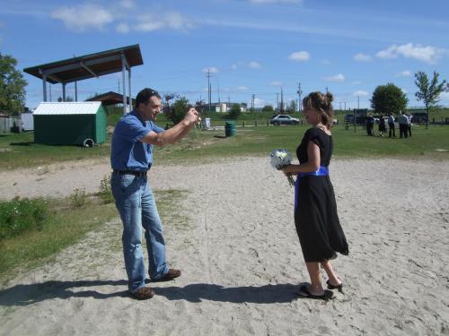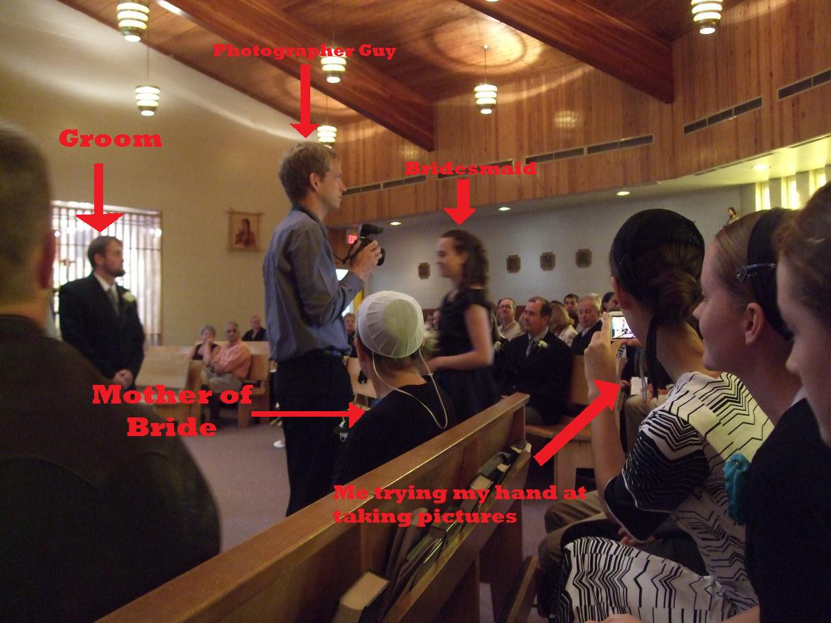 The only camera I have access to right now is my Mom’s, which doesn’t have good pictures of the ceremony. However, I decided to post one blurry one, with notes telling you who is who.