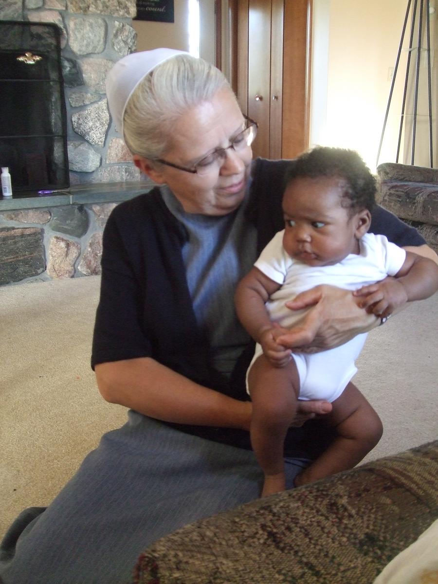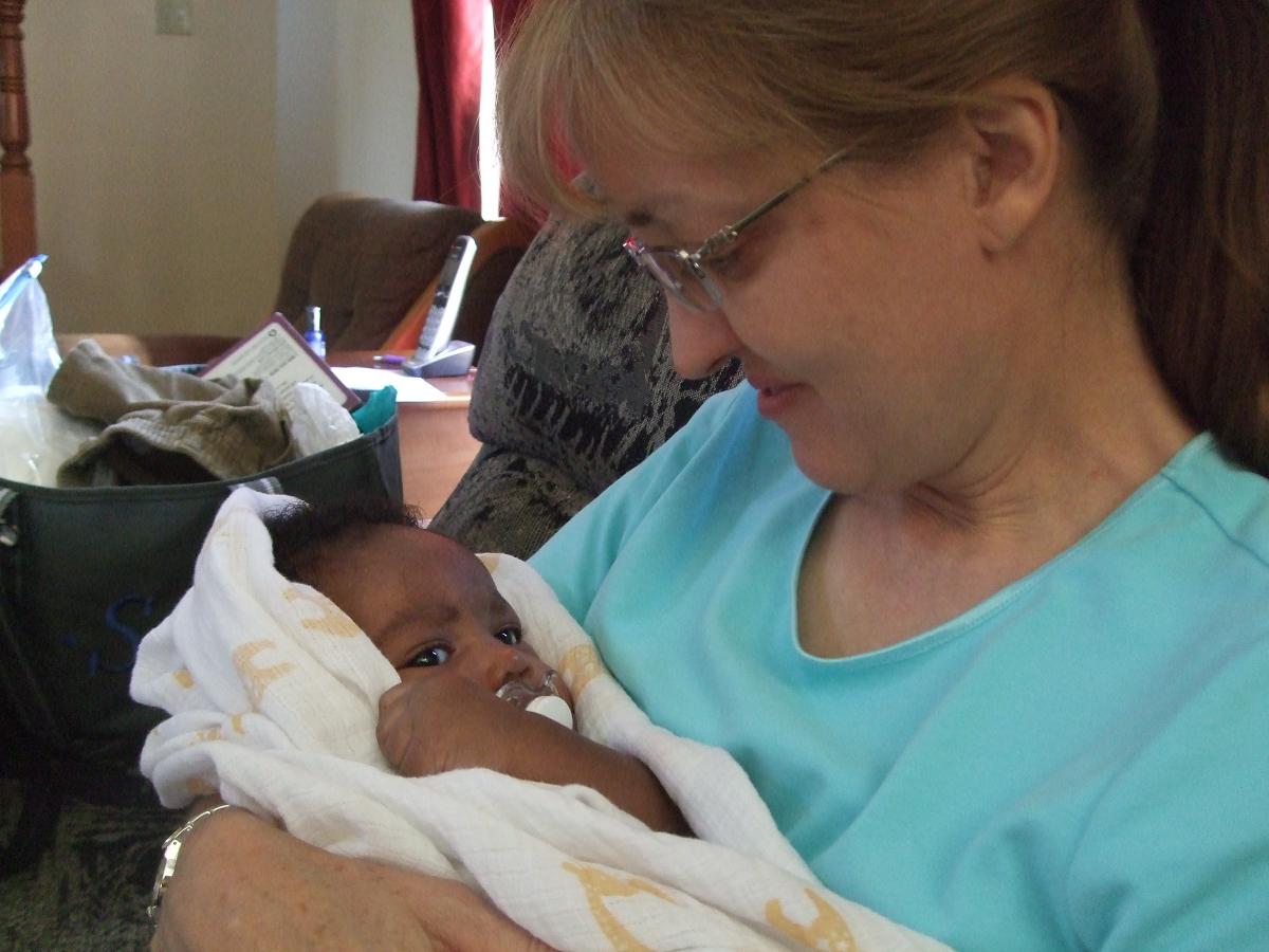 After the wedding was over, and Janet and Mark were safely off on their honeymoon, mom and aunt Rebecca went over to the place where Annette was staying so they could hold beautiful baby Justice for the first time.