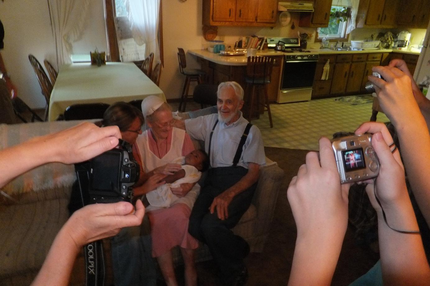 The first order of business was to introduce Grandpa and Grandma to Justice, their first great-grandchild. This was such an iconic family moment that every camera on the premises was flashing in their faces. Paparazzi jokes were made.