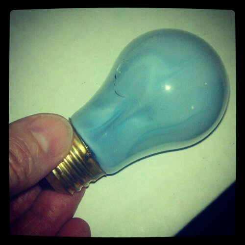 In reality, Mom just waited for the bulb to cool down, and then removed it. It did have a hairline crack in it, which resulted in the bulb turning blue. I don’t know why it did that. I think I’ll google it.