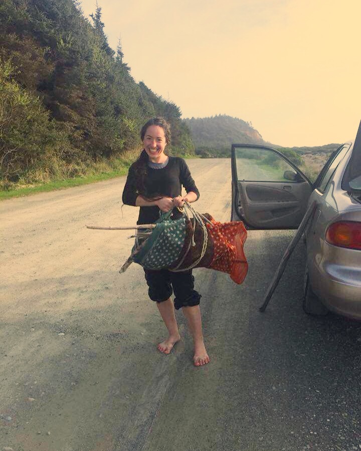 Still, the sun eventually sank towards the ocean. We gathered driftwood to supplement our dwindling firewood supply, and Elaine bundled it into her gypsy scarf and carried it to the car.