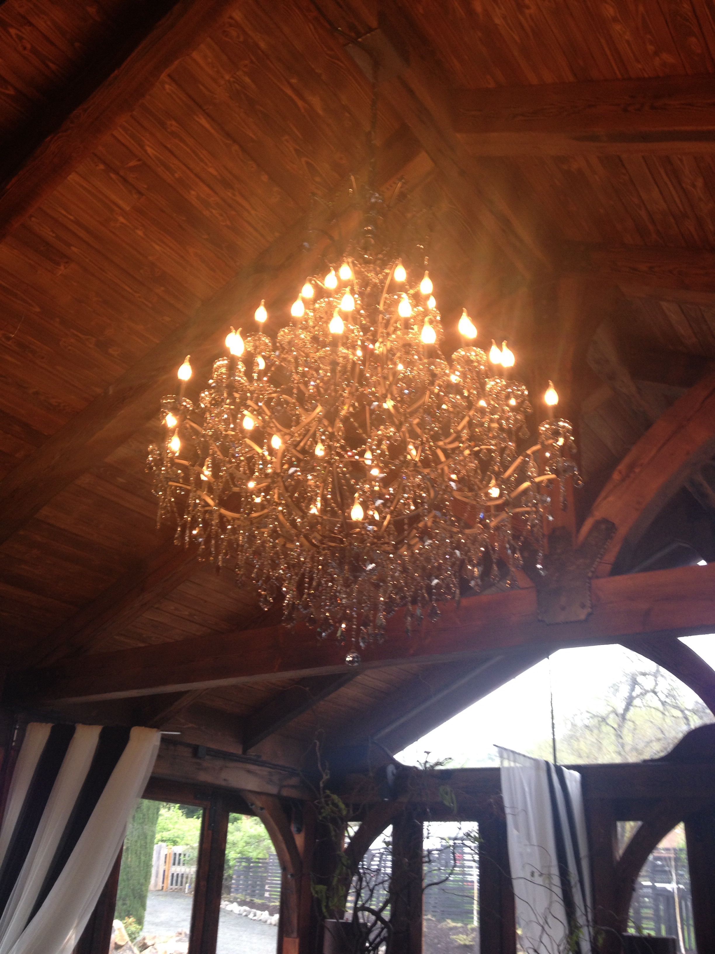 But first she showed me around the rest of the property, fancy dining areas, kitchens, and massive, beautiful chandlers.