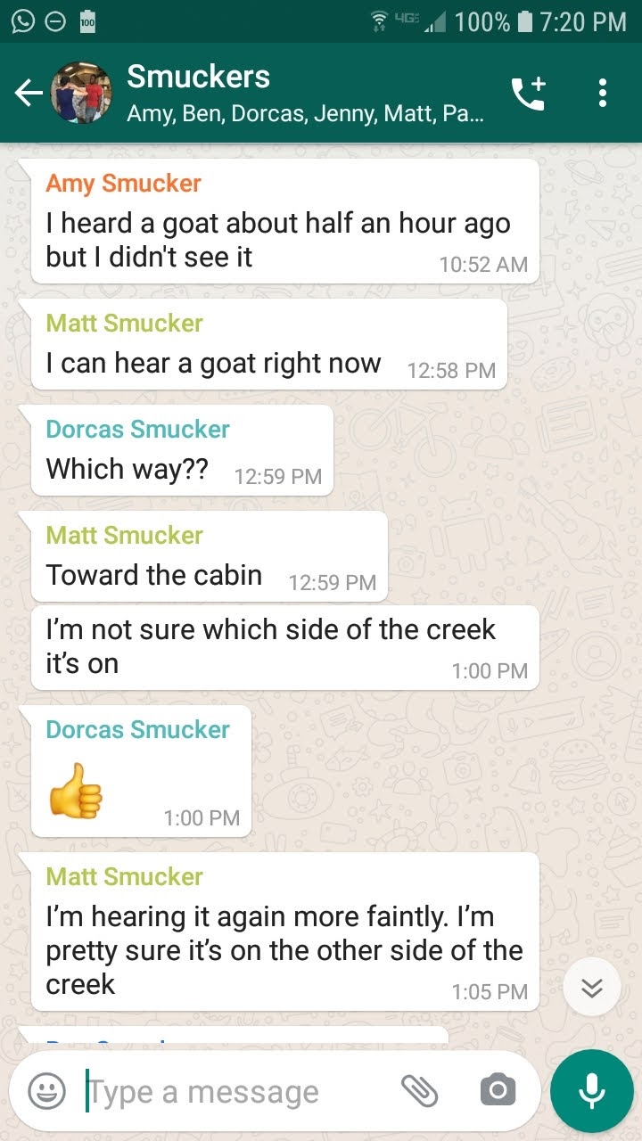 But one strange added layer to the day was the fact that our neighbors lost a goat. So in the middle of the general hustle and bustle of the sale, we were running off to the woods every time we heard a goat bleating, and trying to discern its general location.