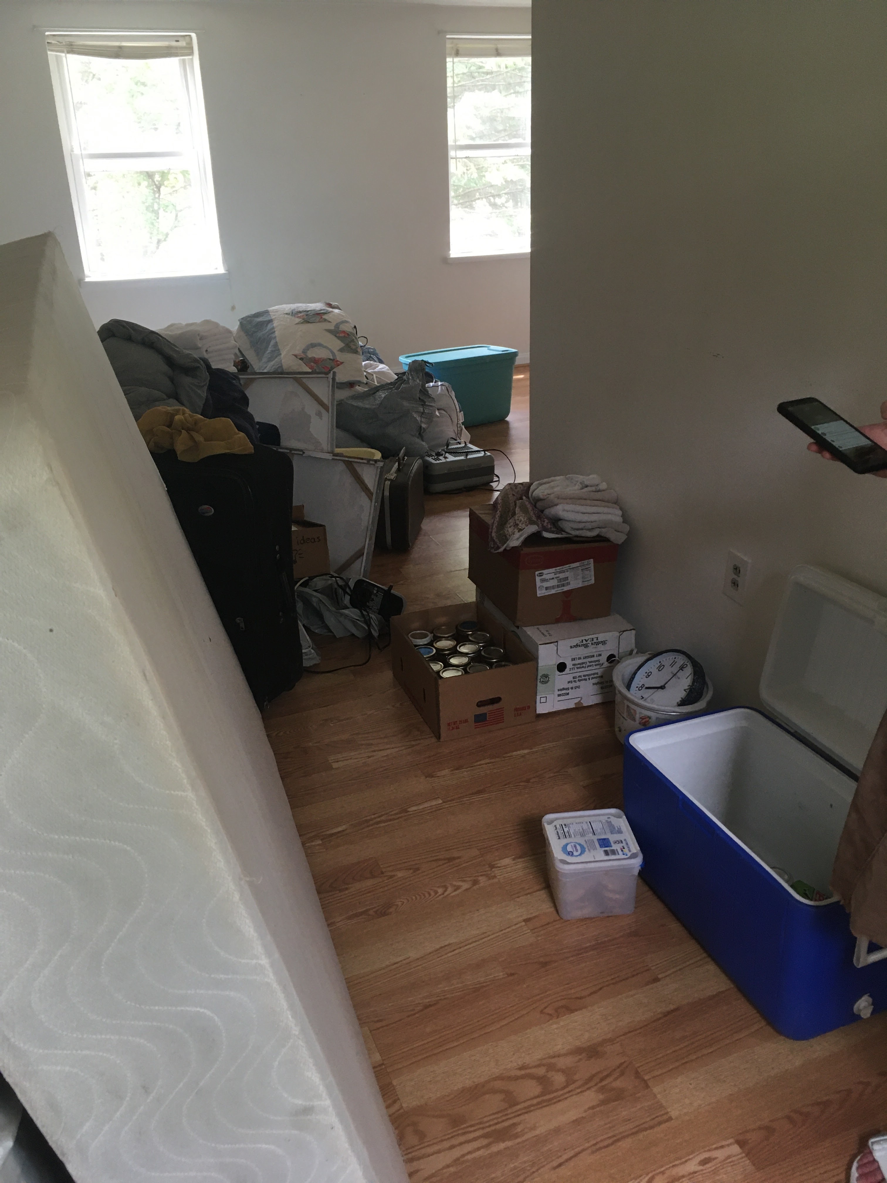 My Aunt Margaret lives several hours south of Blacksburg, and she’d offered to help us move in. She is also, in true Yoder fashion, a Rescuer of Abandoned Things, and she somehow owns extras of just about anything you could ever possibly need. She showed up with a mattress and box spring, bedding, towels, washcloths, rags, kitchenware of all sorts and descriptions, blender, toaster, crock pot, curtains, décor, canned food, frozen food, tubs of butter because butter was on sale, shower curtains, shower mats, etc.