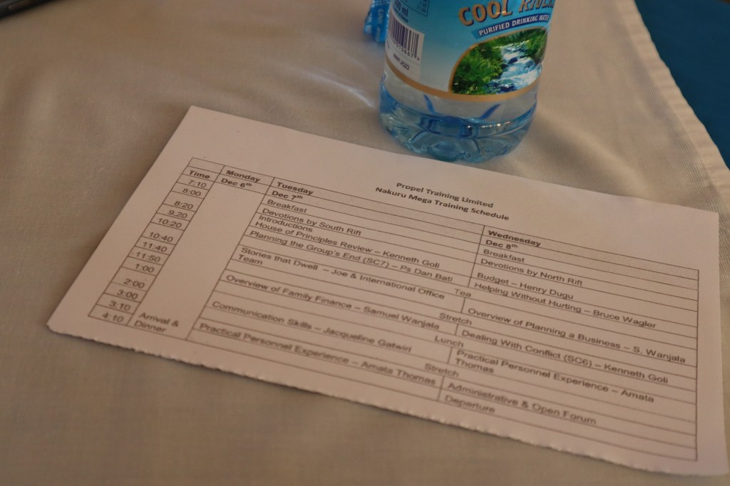 Monday was the beginning of a facilitator training conference. Facilitators from all over Kenya, and even a few from Tanzania, all gathered together at the Cool Rivers Hotel. (Turns out, this was actually why we came to Kenya at this specific time.)