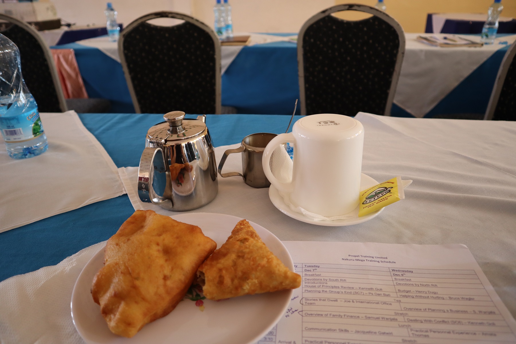 Monday was the beginning of a facilitator training conference. Facilitators from all over Kenya, and even a few from Tanzania, all gathered together at the Cool Rivers Hotel. (Turns out, this was actually why we came to Kenya at this specific time.)