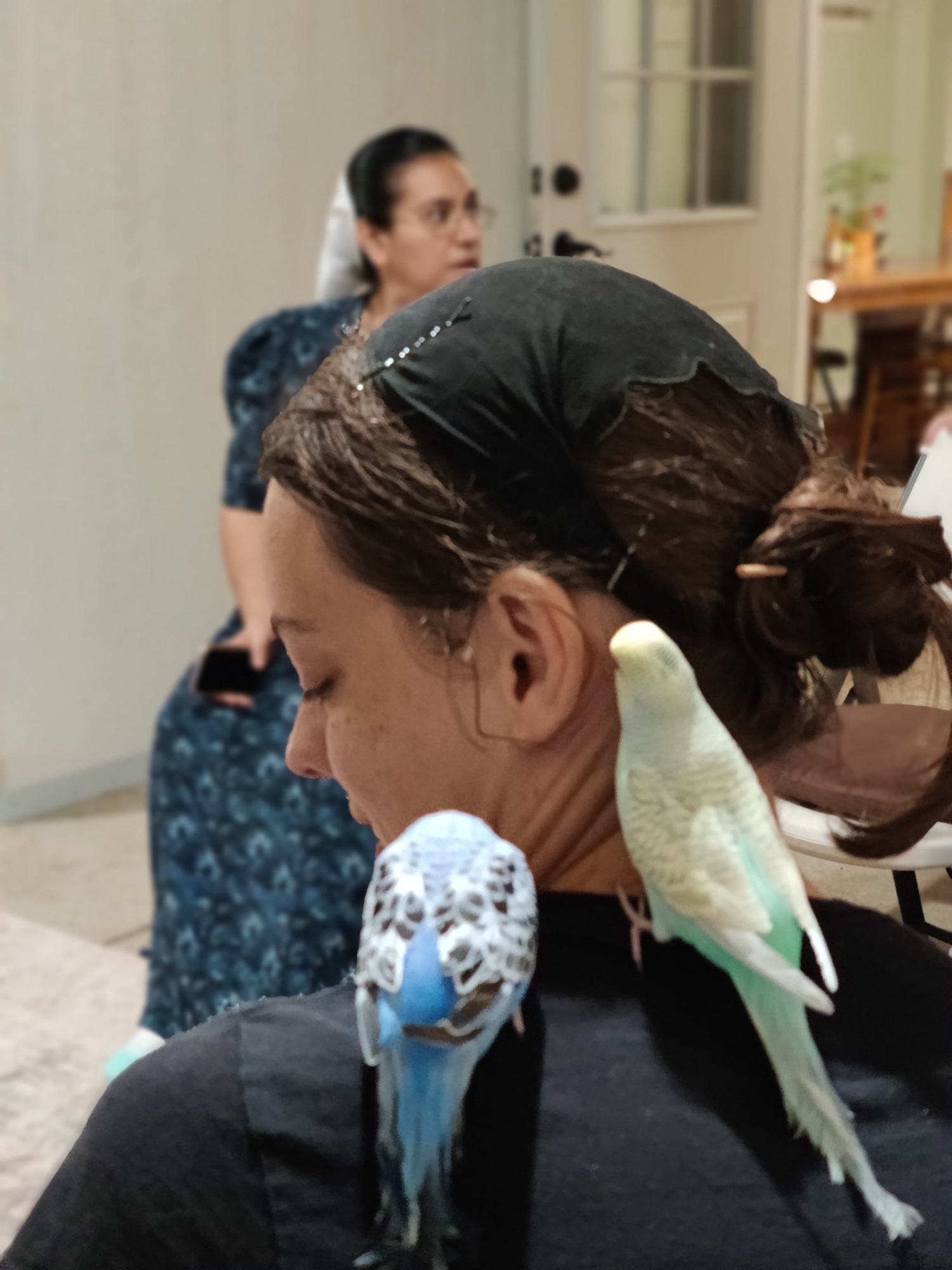 Instead, I went back to the house where we’d seen the eclipse, dashing inside just as a deluge broke from the heavens. Most of the eclipse guests had left, but a few remained yet. We ate leftovers and hung out with parakeets.
