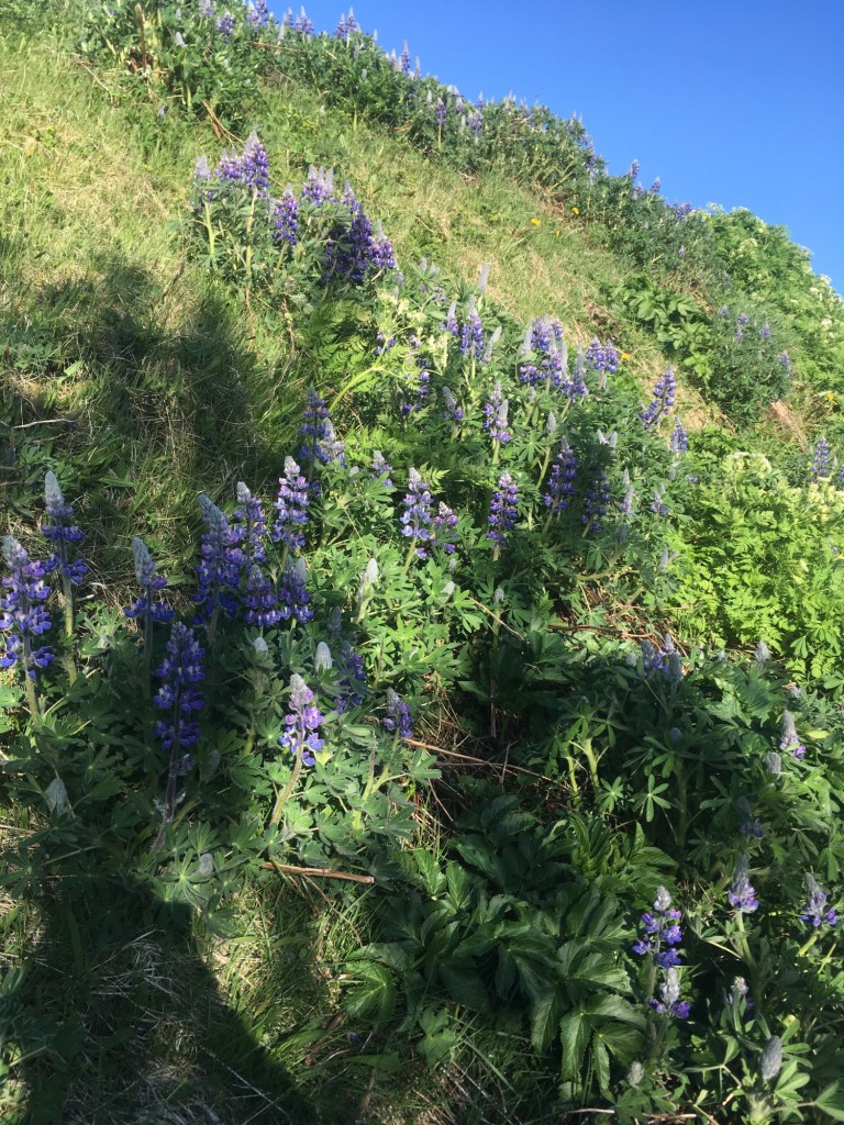It was an easy walk. I went up the main street, turned down a short residential street, and there was a footpath up the hill. The whole hillside was flourishing with the most glorious lupines.