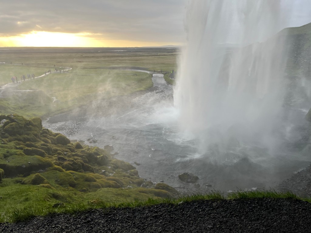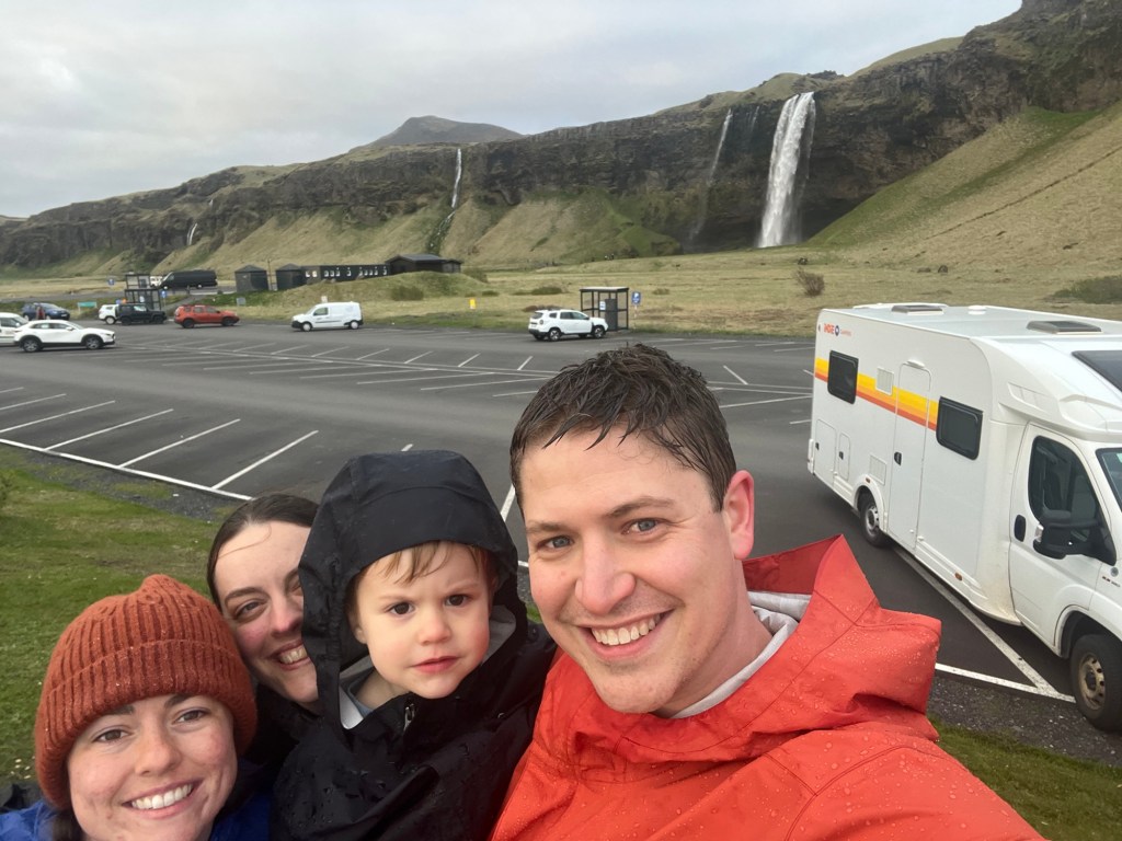 Finally, after about an hour, the baby settled down, Daniel got his wiggles out by running around outside, and we drove South. Ah, nature and long straight stretches of road at last! We didn’t stop until we got to Seljalandsfoss, a famous waterfall you can walk behind.